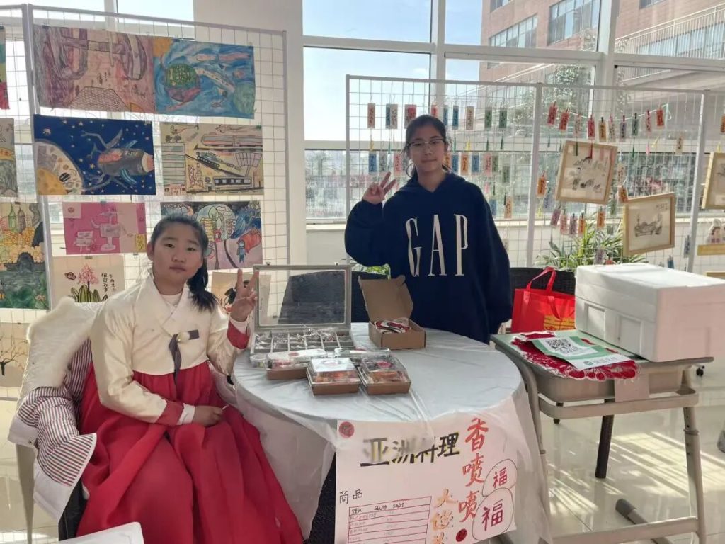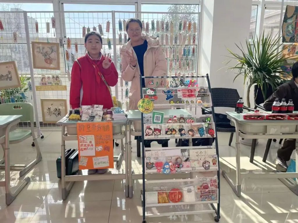 活动当天,校园变成了烟火市集,充满着浓浓的新年氛围。每个摊位都经过精心布置,各有特色,桌面陈列着琳琅满目的商品,丰富的品类与热闹的布置,让校园洋溢着浓厚的新年氛围。老师们化身“头号顾客”,穿梭在各个摊位间,认真挑选年货的同时,为孩子们的创意与热情点赞。